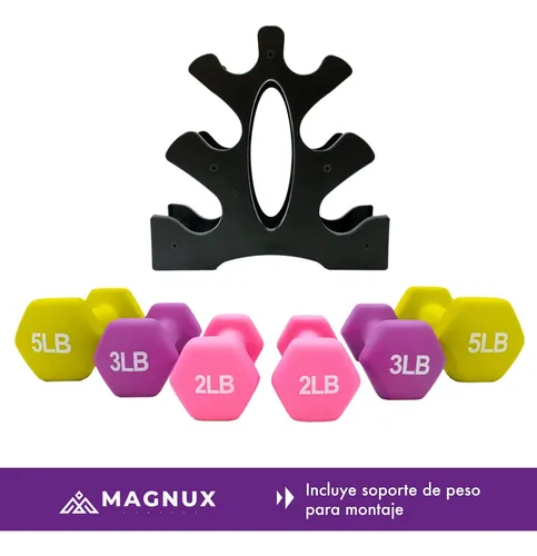 Kit De Pesas Completo Recubiertas Neopreno Con Rack Magnux Color Rosa/Morado/Verde